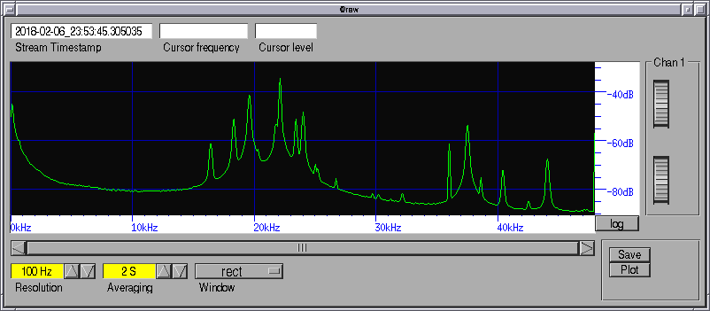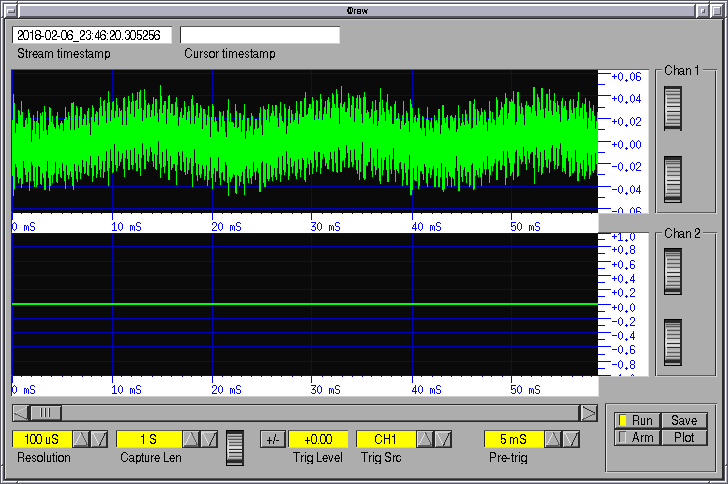 Now you have a working sound interface capturing signal into a lock-free buffer @raw which all manner of programs can then use. The signal is not yet timestamped by the PPS and is not yet filtered to remove mains and other interference. That's why I've called it @raw. Every system has an @raw and it provides the raw signal to input to various chains of signal processing.